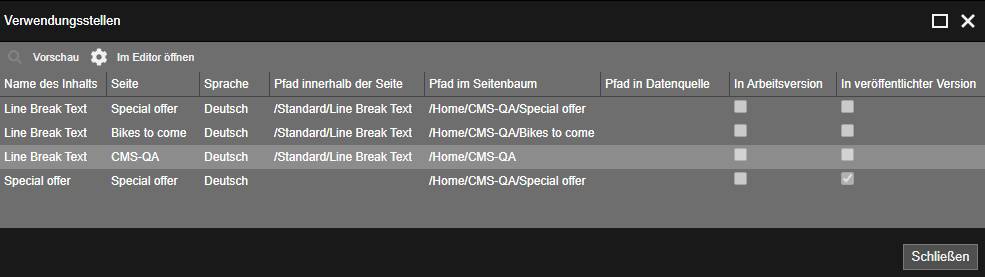Die Verwaltung (Webadmin) stellt nun dieselben Informationen zu den Verwendungsstellen bereit wie die Redaktion.