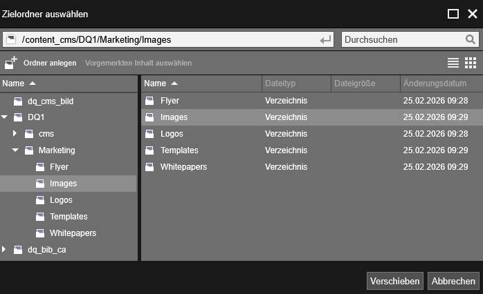 Nach dem Verschieben passt das System die Verlinkungen zu den Dateien automatisch an.