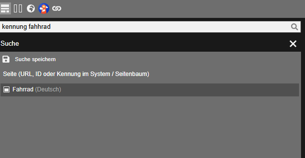 Nach Kennung im Seitenbaum in Redaktionssuche suchen