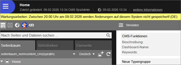 Sobald eine Nachricht hinterlegt ist, erscheint das Banner automatisch am oberen Rand der Redaktion.